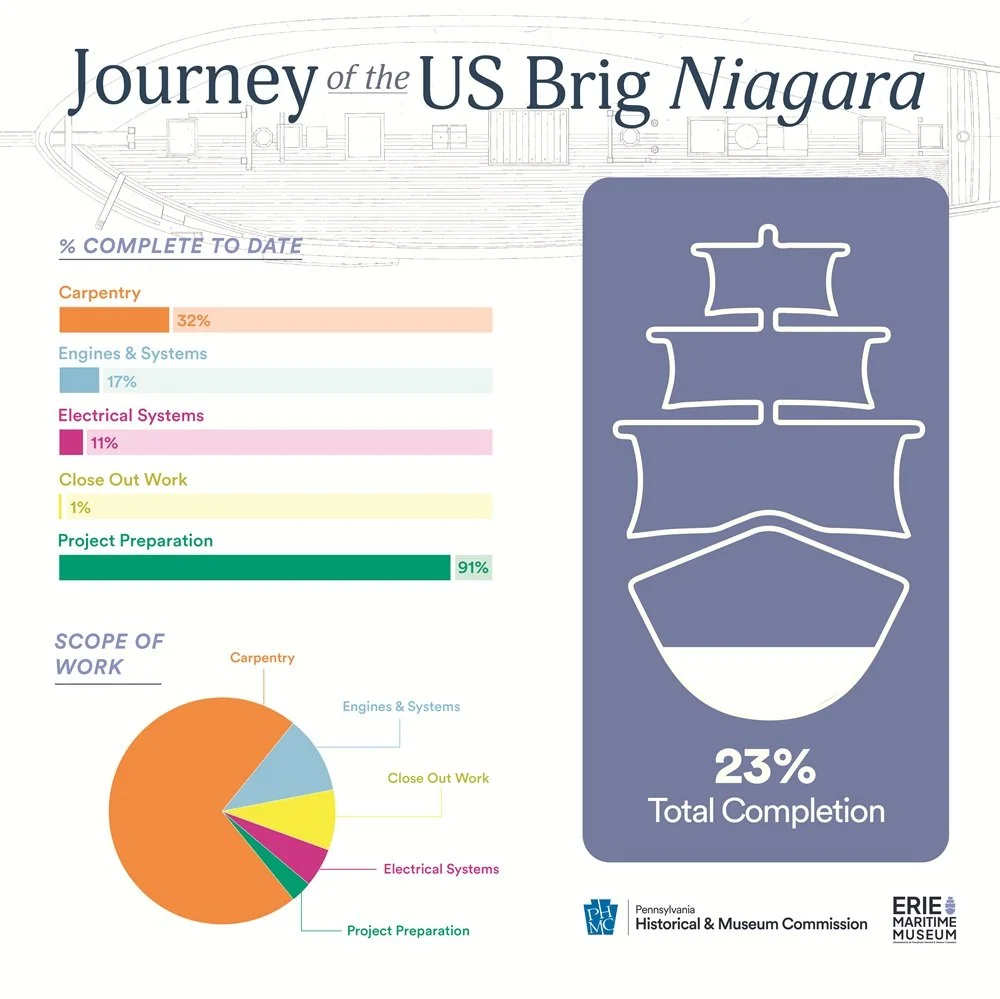 To date, the U.S. Brig Niagara capital repair and refit project is approximately 23% complete. As you can see in the infographic, we’re making excellent progress across all major categories.